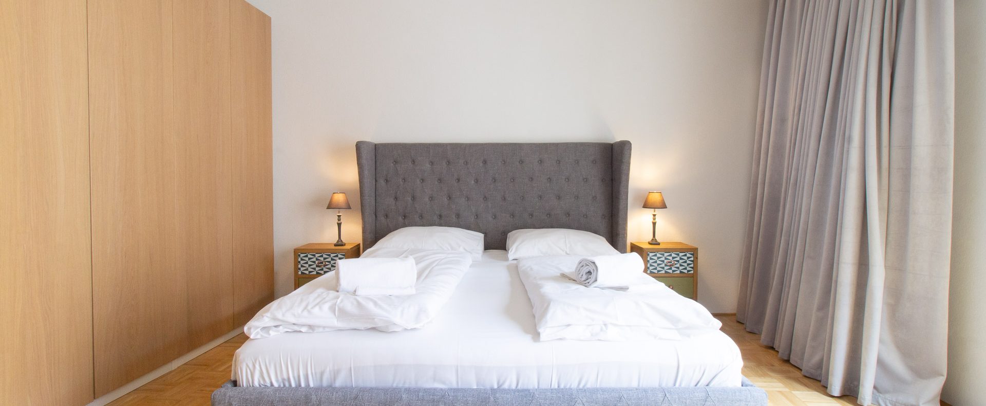 This beautiful apartment contains 3 bedrooms and a living room. Two of the bedrooms are equipped with king size beds where the third one contains a single bed. The living room is combined with a spacious dining area. As a part of the apartment facility is also a spaced and very well equipped kitchen with a dishwasher, washing machine, an oven and an electrical cooking area. A part of the apartment is also a delightful bathroom with a build-in bathtub where the WC is separately available.